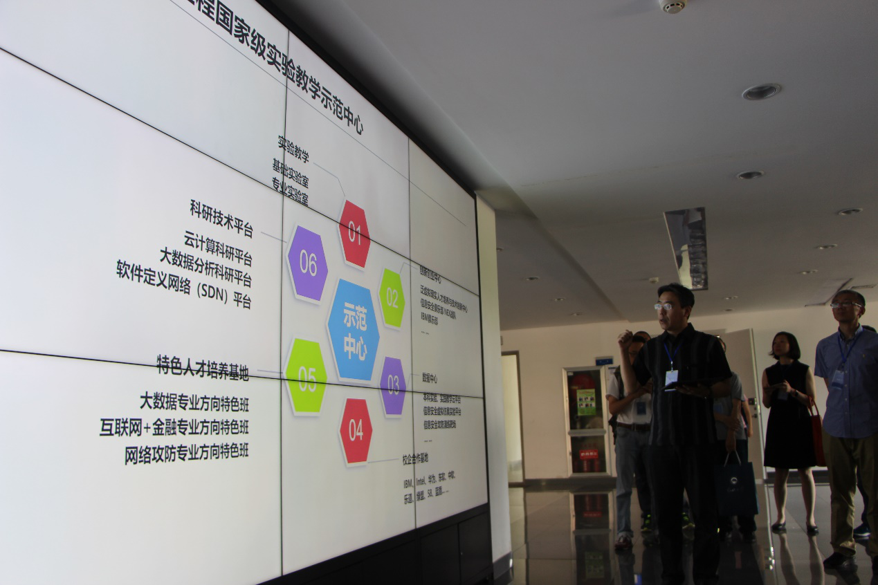 开幕式结束后,与会领导及嘉宾对best365手机版官网国家级实验教学示范中心进行了参观,并在上午开展了以“一流本科专业建设”为主题的研讨会,会议由best365手机版官网副院长于瑞云主持。best365手机版官网院长张斌,上海交通大学best365手机版官网院长臧斌宇、南昌航空大学best365手机版官网院长舒坚分别就各自学校软件工程专业的建设情况进行详细介绍。东软睿道总裁李印杲以“产教结合,助力高校一流本科专业建设”为题作经验分享。