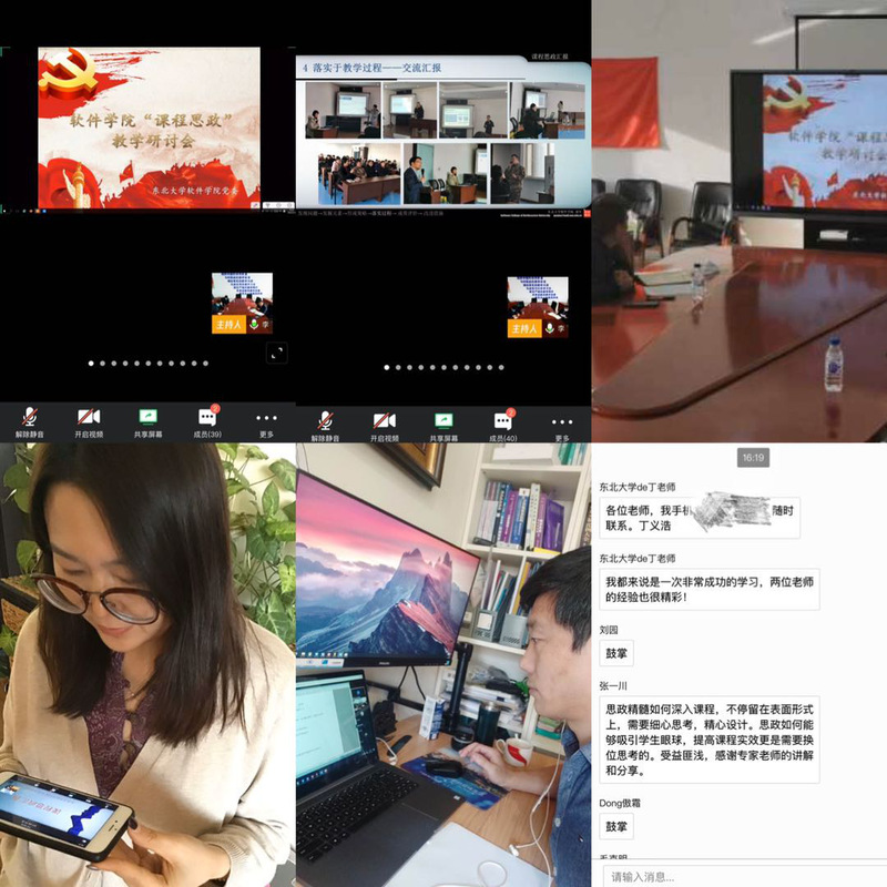 在讨论交流环节,张一川老师对专业性质较强的编程语言类课程如何搞好思政教育,向丁部长进行了请教,丁部长结合其他学院的教学实例给出了建设性的建议。他指出,思政教育本身可以结合专业技术,结合国情和教育目标,引导学生的学习和思考。同时,陈东明院长给出补充意见,他指出结合国家专业技术壁垒,从爱国热情角度激发同学们学习专业技术的激情。崔晓莉老师也谈到,听了丁部长的讲座,感觉很受启发,收获很大。她认为外语教学是进行思政教育的重要园地,在平时授课中可以结合教学内容及学生的学习生活实际,用当代大学生喜爱的方式将思政教育融入课堂,以培养既具有国际视野,又坚守中华民族优良传统的优秀人才。那俊老师谈到,通过此次研讨会,她深刻认识到要想做好课程思政,首先就需要提高自身的政治素养,加强政治理论学习,注重理论联系实际,关心国家大事,时事政治,并有明锐的洞察力和准确的分析,将思政要素无缝融入到专业课的授课内容中,不生搬硬套,不做作,达到润物细无声。