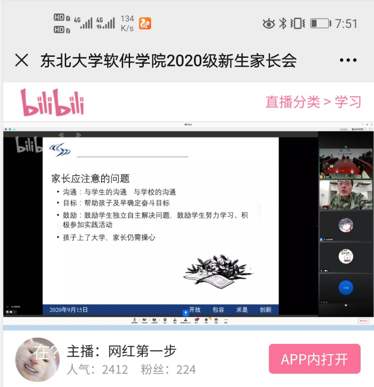 9月15日晚19:00-21:00,best365手机版官网举行2020级新生云端家长会,院长张斌、副院长程维出席家长会,学生办主任、2020级辅导员参加家长会,家长会采用腾讯会议+网站直播的形式举行,总体流量达2600。
