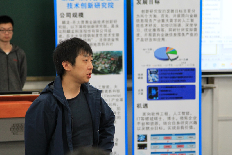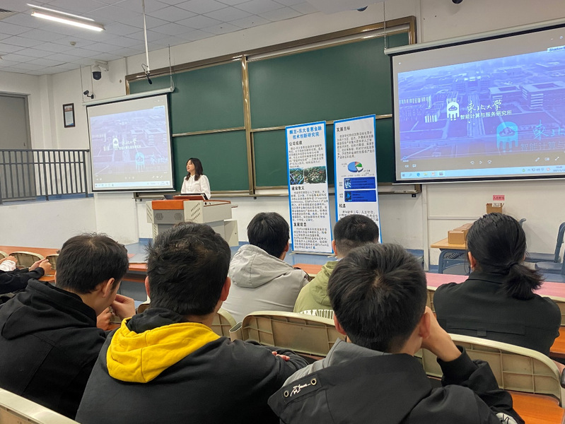 之后由研究所老师向同学们介绍了“智能计算与服务”研究所的学科带头人和领域专家,介绍了相关的科研方向、以及通过视频方式对研究成果进行展示。之后由学生代表分别详细介绍了六项主要研究成果,1. 以宝马生产为背景的数据驱动的预测性维修和预防性维护;2. 棋盘山地区森林火险预警系统的设计与实现;3. 介绍了暴力视频检测研究与实现;4. 介绍了机器人室内定位技术;5.介绍了复杂问题搜索的相关研究 6. 介绍了包括悦健康、挚未来智能康复训练系统。