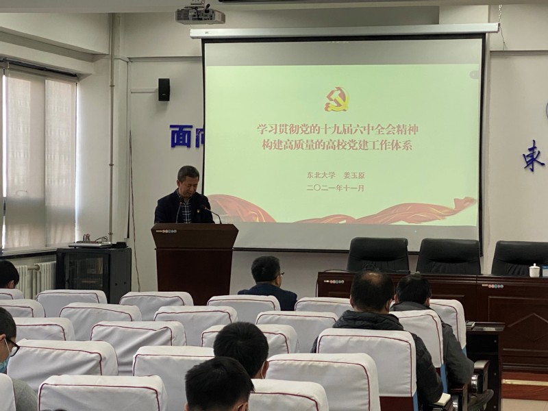 接下来姜玉原就正在召开的党的十九届六中全会即将审议通过的《中共中央关于党的百年奋斗重大成就和历史经验的决议》和十九大以来历次中央全会作了详细介绍,指出党的十九届六中全会肩负着承前启后、继往开来的伟大使命,在以习近平同志为核心的党中央坚强领导下,百年大党通过对历史的全面深刻总结,必将进一步统一思想、凝聚力量,不忘初心、牢记使命,带领全体中华儿女在中华民族伟大复兴的新征程上再创新的辉煌。