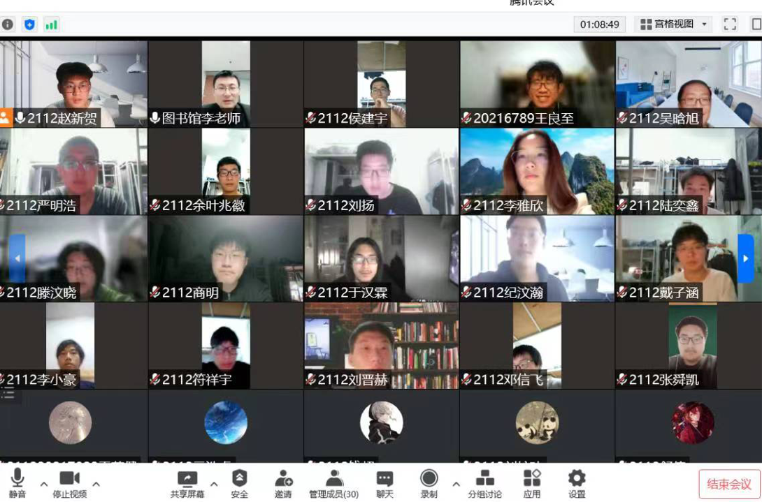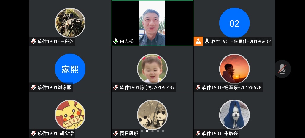 王裕民老师对接软件2001班,线上座谈中王老师聆听了班级发展情况和班集体建设“五育”工程进展,同学们聆听了王老师关于鼓励同学们投身科技报国的教诲。