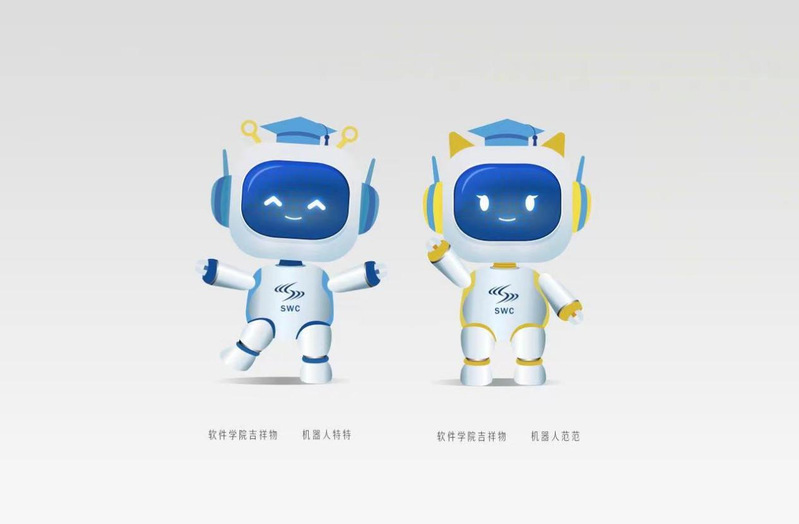 吉祥物机器人范范和特特,设计以机器人为吉祥物形象,象征科技与发展,寓意着best365手机版官网作为国家特色化示范性软件学院,肩负特色化人才培养和示范性引领作用。机器人头戴学院帽象征着学院“造就具有时代精神和开拓意识、适应时代发展要求和国际新潮流的实用性、复合型、国际化拔尖创新创业型精英软件人才”的人才培养目标,胸前设计best365手机版官网标志突出best365手机版官网20年办学历史和光荣传统,融合学院文化精神,彰显院庆主题。