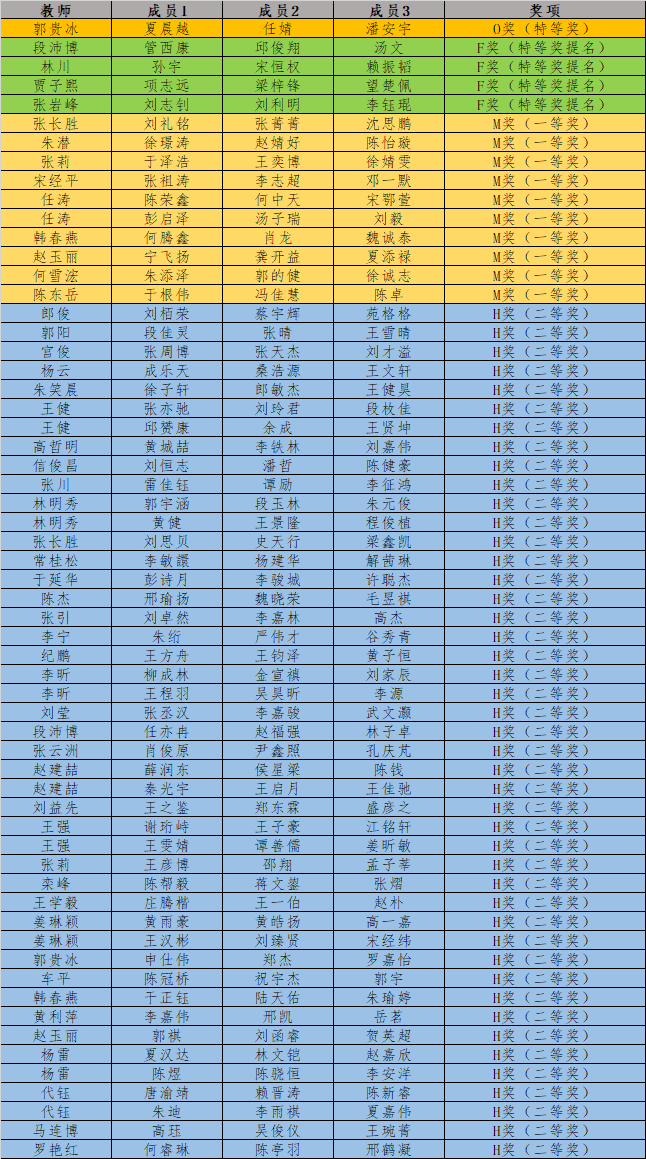 我院教师段沛博、林川指导的项目分别荣获F奖(特等奖提名奖),我院教师任涛、张长胜、韩春燕、张莉、赵玉丽、朱潜、宋经平指导的项目分别荣获M奖(一等奖)。