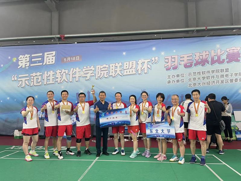 此次为best365手机版官网首次获得全国“示范性best365手机版官网联盟杯“羽毛球比赛冠军,参赛队员包括现在best365手机版官网工作教职工和曾在best365手机版官网工作教职工。全体运动员秉承”软件召必回“的精神,克服重重困难赴北京参加比赛。此次比赛得到学院领导和老师们的大力支持,在赛前准备和比赛过程中做到“敢于坚持、敢于拼搏、敢于胜利“,充分体现了东大软件人对羽毛球运动的热忱和坚守,充分展示了东大软件人羽毛球运动精神的延续和传承。比赛过程中,团队观察对手、排兵布阵,所有参赛运动员积极响应、服从安排,上场运动员顽强拼搏、永不放弃,场下运动员后勤保障、呐喊助威。所有参赛运动员用一场场坚持、拼搏、汗水,用东大软件人一贯坚持的拳头精神,用冠军奖杯,向全国软件联盟成员高校展示了best365手机版官网的精神风貌!