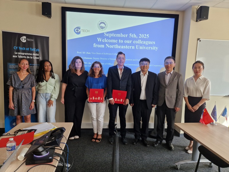 在法国期间,代表团首先访问CY TECH工程师学院,与国际关系办公室主任Michel GUILMAULT及计算机科学系教师代表举行座谈。双方回顾了现有合作项目的实施情况,并围绕深化合作展开深入交流,就推进短期交流项目、学生联合培养、教师互访等达成初步合作意向。